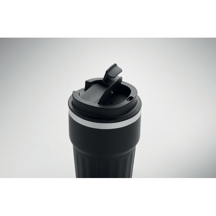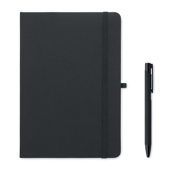 A5 jegyzetfüzet, újrahasznosított alumínium golyóstoll és 350 ml-es duplafalú, újrahasznosított rozsdamentes acél pohár PP, ivónyílásos fedéllel, pánttal, díszdobozban. 30.4X24.6X10.5CM