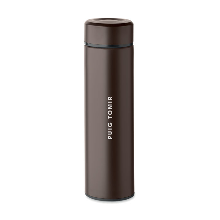 Duplafalú termoszpalack újrahasznosított rozsdamentes acélból (90% újrahasznosított rozsdamentes acél és 10% rozsdamentes acél), belső kerámia bevonattal. Szivárgásmentes. Űrtartalom: 420 ml. Ø6X22CM
