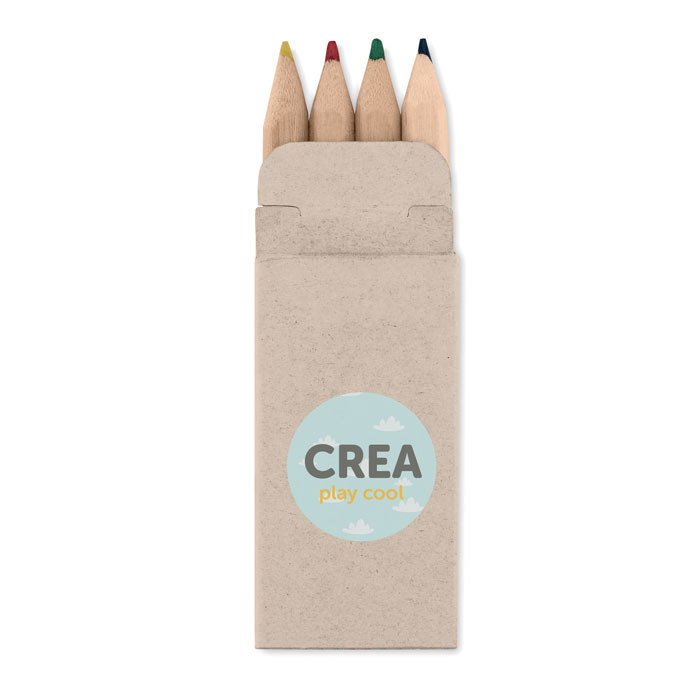 4 mini színes ceruza újrahasznosított papír dobozban. 3,2X0,8X6,1CM