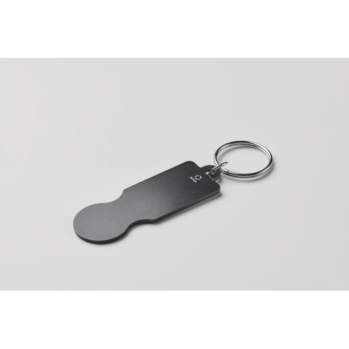 Bevásárlókocsi-érmés kulcstartó újrahasznosított alumíniumból. 6,9X2,3CM